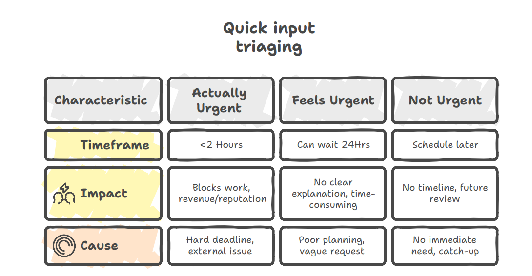 I check email at set times - usually morning, post-lunch, mid PM, and end of day - to avoid constant interruption. Exceptions for genuinely urgent things, but that's what the "Is This Actually Urgent?" test is for.